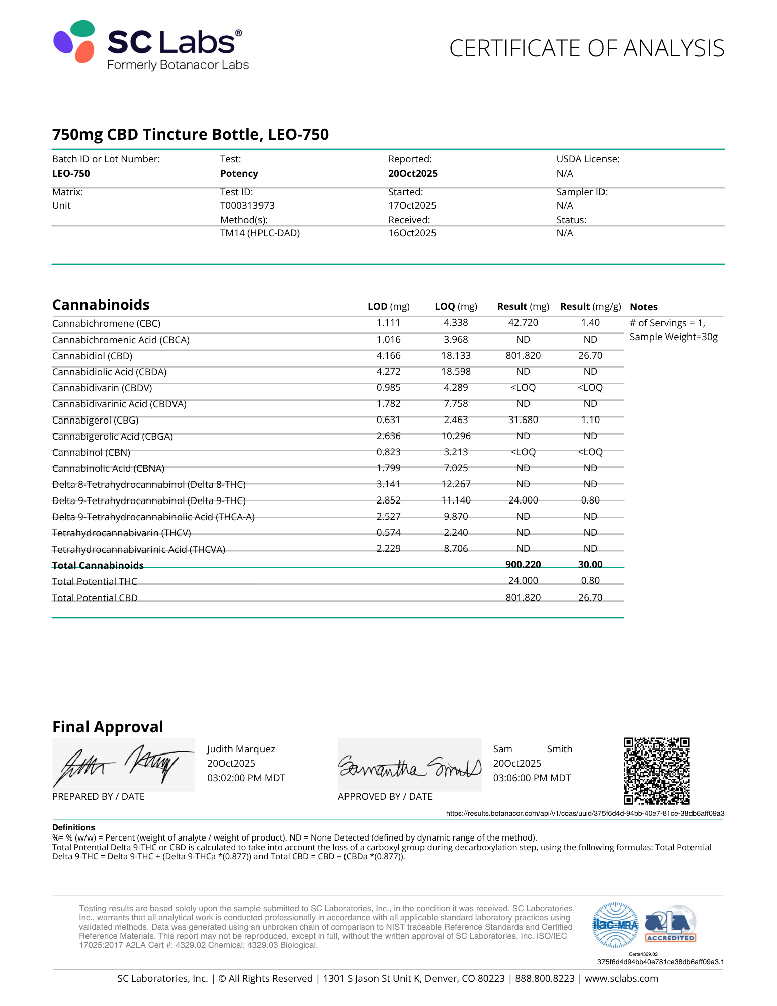 Test #2 is done after our purification process of the hemp. The hemp is extracted into large batches and those batches are tested for contaminants and the amount of viable CBD. If those test are in line with the expectations from the initial test, the batches are released to production. If not, they are tested again and reevaluated.